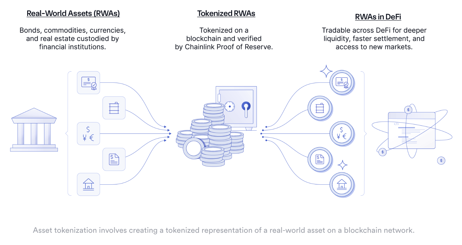Chainlink用下面的插图解释了资产代币化的运作方式。它的主要优点包括通过可互操作的代币化资产增加流动性和提高可访问性,使小额投资者能够以相对较低的资本投资高收益资产。此外,由于许多区块链的公共性质,它提高了透明度,并通过将真实世界资产的价值连接到DeFi生态系统中,增强了组合性。