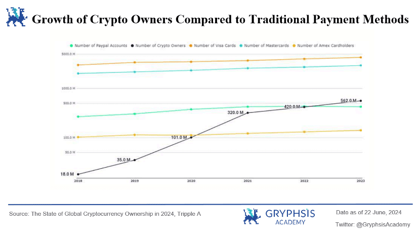 比特币减半事件通过减少新比特币的生成速度,提高了其稀缺性和价值增长预期,吸引了广泛的市场关注。比特币交易所交易基金的推出,为传统投资者提供了低门槛、便捷的投资渠道,增强了市场信心。以太坊交易所交易基金的预期落地,进一步引发了对以太坊生态系统和创新应用的兴趣。这些因素共同推动了更多人了解和参与 Web3 支付。