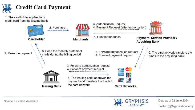 卡组织( 如 MasterCard, VISA ):处理支付卡交易的全球网络。卡组织接收来自收单机构的支付请求,向发卡行发送授权请求,并将授权响应转发回收单机构,确保交易请求得到发卡行批准。