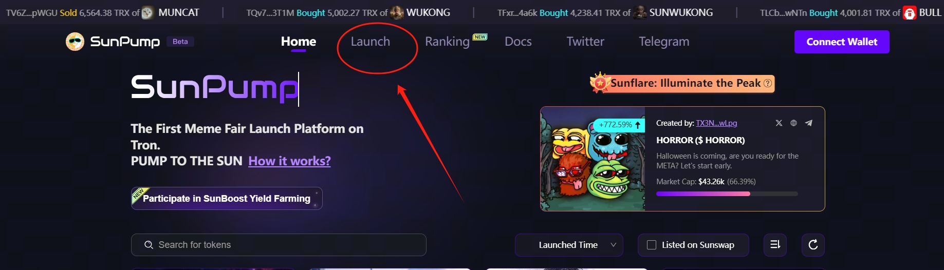 打开SunPump官网:https://sunpump.meme/home